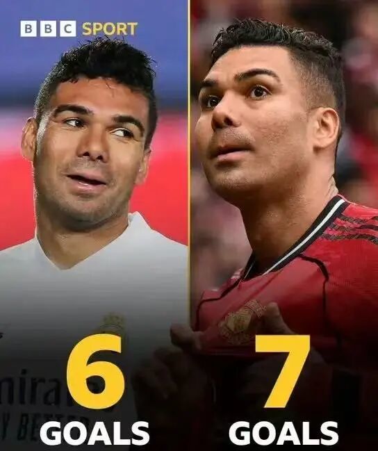 2月对阵富勒姆头球破门,3月对阵纽卡斯尔头球破门,最近又在对阵维拉时头球建功,在三粒头球的加持下,卡塞米罗凭借着7粒英超进球,刷新了个人生涯五大联赛单赛季进球数纪录。即便在皇马捧起了5座欧冠冠军,期间单赛季最高进球纪录只有6个。