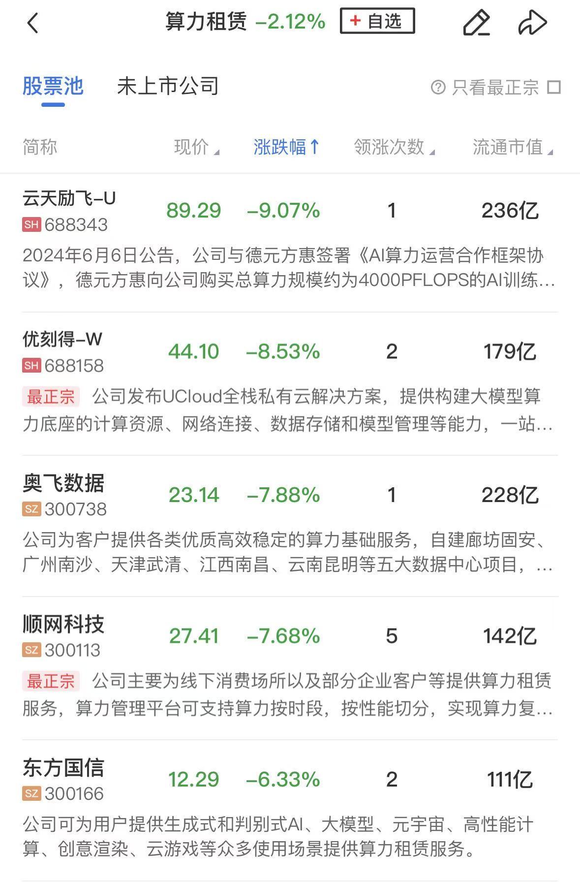 云计算、算力租赁方向再度陷入调整,美利云跌停,汉得信息、优刻得、华胜天成、中电鑫龙等涨幅同样跌超8%。